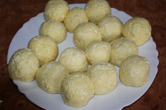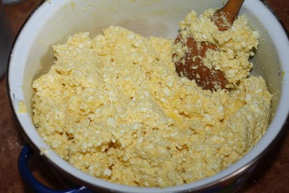 1. Tvaroh, múku, žĺtky, prášok do pečiva, roztopené maslo, mlieko a soľ spolu zmiešame a vypracujeme cesto.
