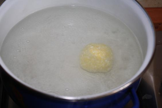 3. Do hrnca dáme vrieť vodu a do vriacej vody vkladáme guličky. Varíme asi 3 minúty.
